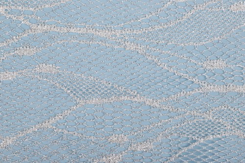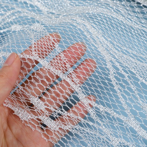 Ce tissu capture l'essence des vagues scintillantes de l'océan, avec une fine superposition de paillettes sur une maille inspirée du filet de pêche. Le design ouvert et les accents scintillants apportent une texture dynamique et accrocheuse qui semble à la fois audacieuse et raffinée. Parfait pour ajouter une touche de glamour aux designs, costumes ou accessoires avant-gardistes, ce tissu insuffle à toute création une élégance radieuse et moderne qui éblouit sous tous les angles.