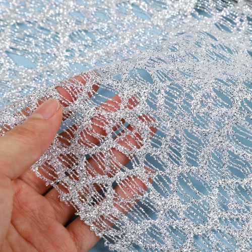 Ce tissu enchanteur ressemble à un voile de poussière d'étoiles, avec de fines paillettes délicatement dispersées sur une maille ajourée. La structure translucide permet à la lumière de danser à travers chaque détail chatoyant, créant un look à la fois éthéré et sophistiqué. Idéal pour les robes de soirée, les superpositions ou les accessoires tendance, ce tissu ajoute un éclat céleste, parfait pour les créations qui captivent et illuminent.